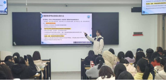 在诚信应考教育环节,班主任明确了四六级考试及期末考试的时间安排,督促同学们合理规划复习。结合《WilliamHill中文学生违纪处分办法》《国家教育考试违规处理办法》,班主任详细解读了考试违纪、作弊的具体情形与严肃后果:考试违纪将取消科目成绩或给予警告以上处分;考试作弊将取消当次各科成绩或给予留校察看处分;代考、使用通讯设备作弊、组织作弊等严重行为,将直接开除学籍,情节严重者还需承担法律责任。为强化警示效果,班主任分享了多起典型案例,包括WilliamHill中文学生因代考、手机传答案被开除学籍,四六级考试中撕毁或替换答题卡受处分,以及研究生入学考试组织作弊被判刑的事例,提醒同学们摒弃侥幸心理,坚守诚信底线。