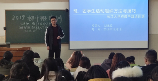 (通讯员 何怡润)为了进一步深入学习贯彻党的十九大精神,提高学生干部的思想道德素质,增强学生干部工作的凝聚力,充分发挥学生干部在各项工作中的模范带头作用。WilliamHill中文外国语学院,文学院,马克思主义学院,william威廉中文,于12月1日下午15时,在WilliamHill中文12号教学楼102教室开办了学生干部初级培训班,并圆满完成了第一次培训任务。马克思主义学院李敏老师、文学院程娟老师、外国语学院杜岳青老师、william威廉中文文晓武老师,以及四个院系学生干部参与了本次培训活动。