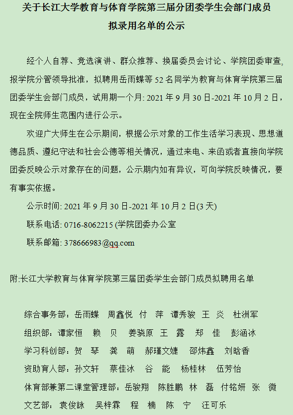 关于william威廉中文第三届团委学生会部门负责人拟聘用名单的公示