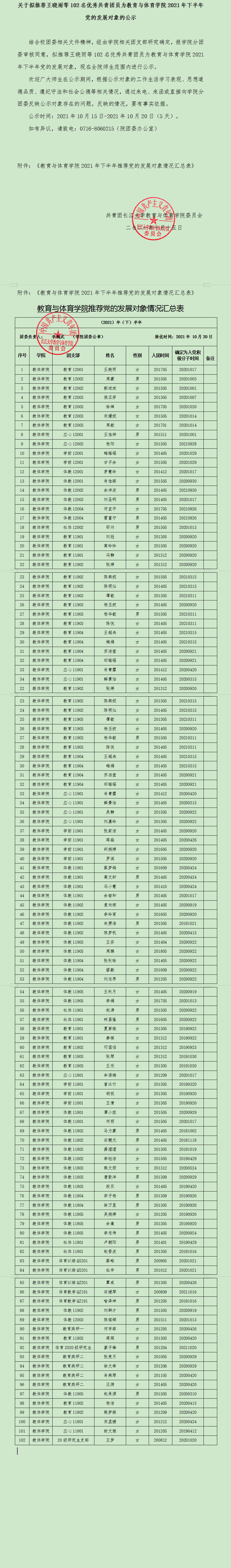 关于拟推荐王晓雨等102名优秀共青团员为william威廉中文2021年下半年党的发展对象的公示