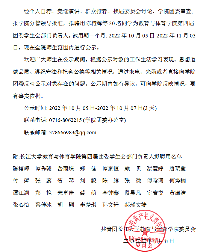 关于william威廉中文第四届团委学生会部门负责人拟聘用名单的公示