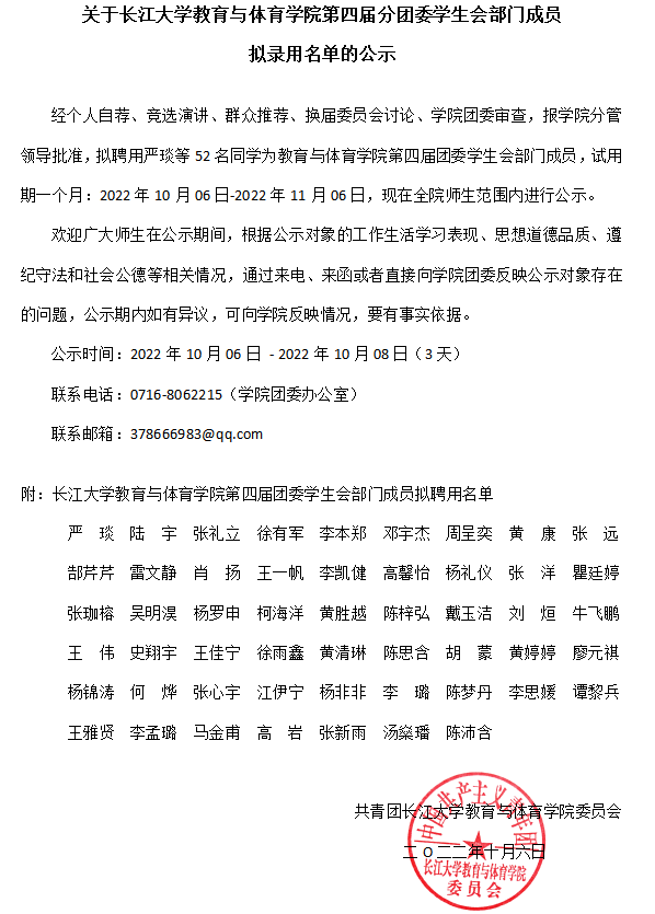 关于william威廉中文第四届团委学生会部门负责人拟聘用名单的公示