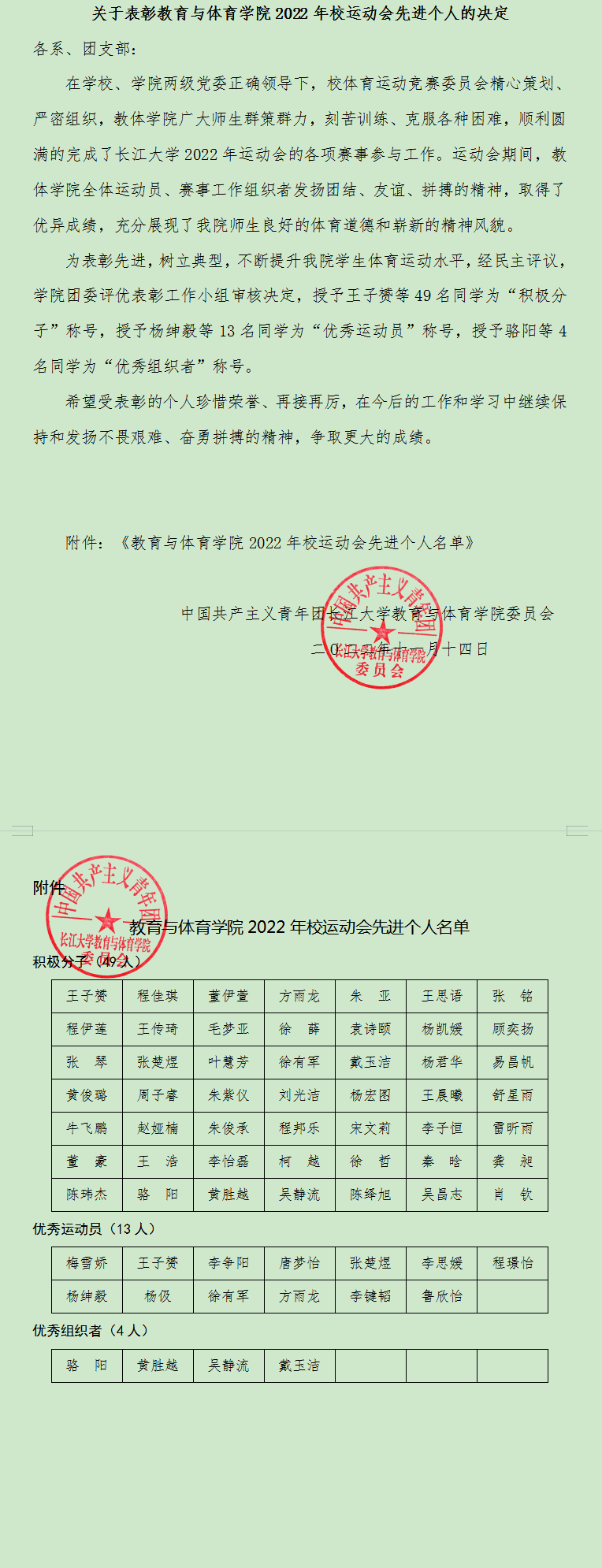 关于表彰william威廉中文2022年校运动会先进个人的决定
