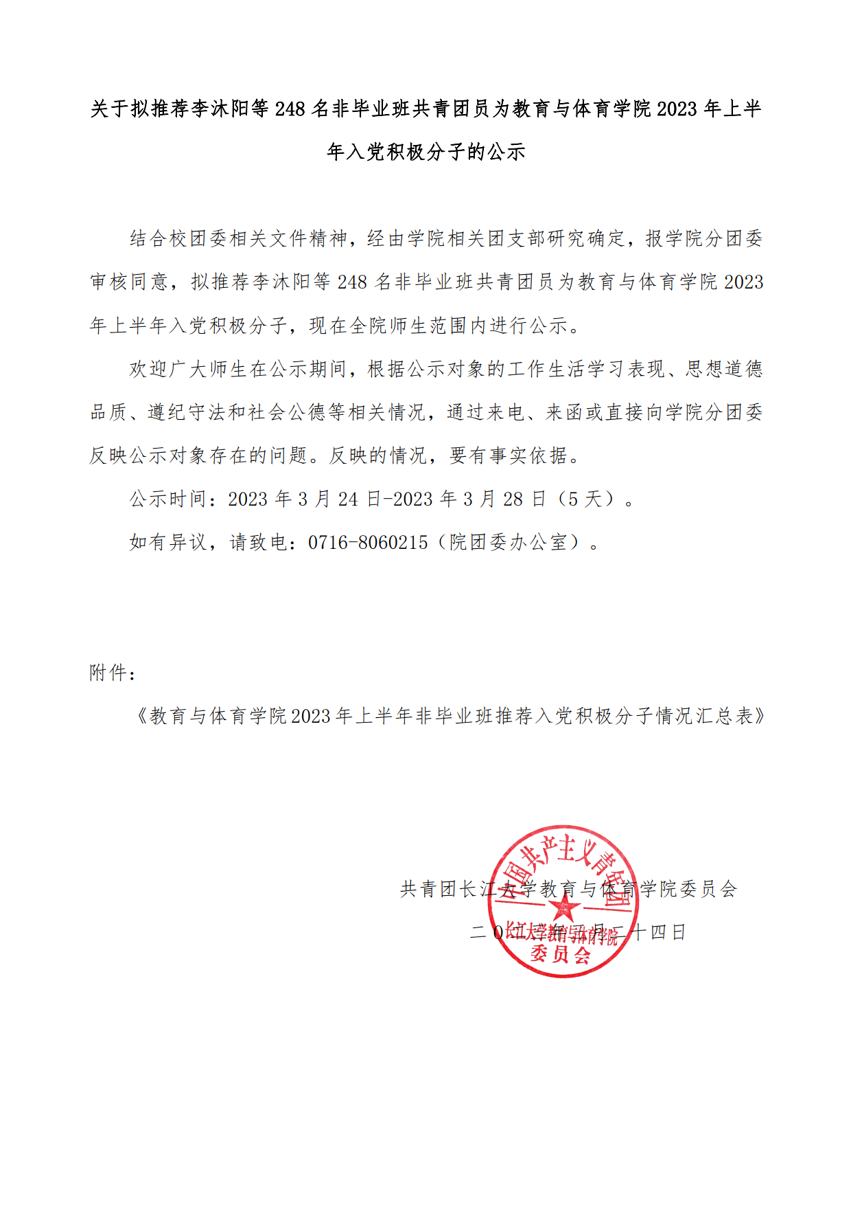关于拟推荐李沐阳等248名非毕业班共青团员为william威廉中文2023年上半年入党积极分子的公示