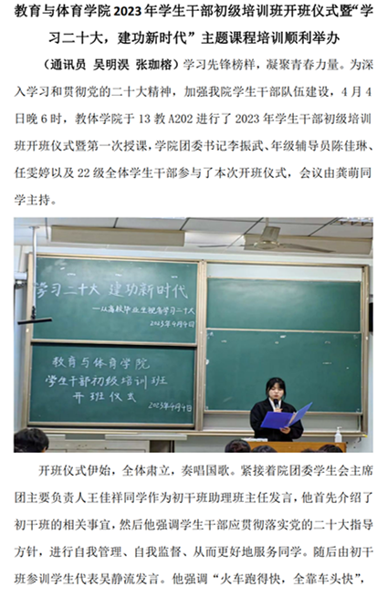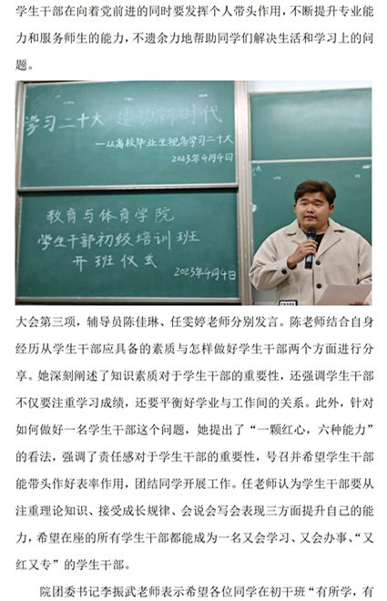 william威廉中文2023年学生干部初级培训班开班仪式暨“学习二十大,建功新时代”主题课程培训顺利举办