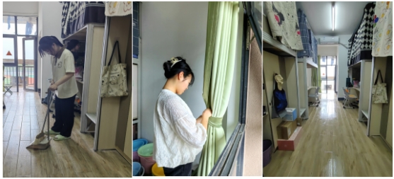 中午12时,志愿者们忙碌的身影出现在各个寝室。大家都积极投入到卫生大扫除中,纷纷拿起扫帚、拖把和抹布等清洁工具,帮助同学打扫寝室卫生。他们扫走寝室里角落的灰尘,擦去门窗和桌子上的污渍,按照寝室卫生标准摆放好物品,经过半个多小时的清扫,各个寝室都焕然一新。志愿者们用实际行动为宿舍清扫贡献了自己的一份力量,参加此次活动的成员张珈榕说:“这次大扫除很有意义,不仅让我们深入了解了寝室卫生的标准,还增进了同学之间的友谊,更坚定了我们为同学们服务的初心和使命。”