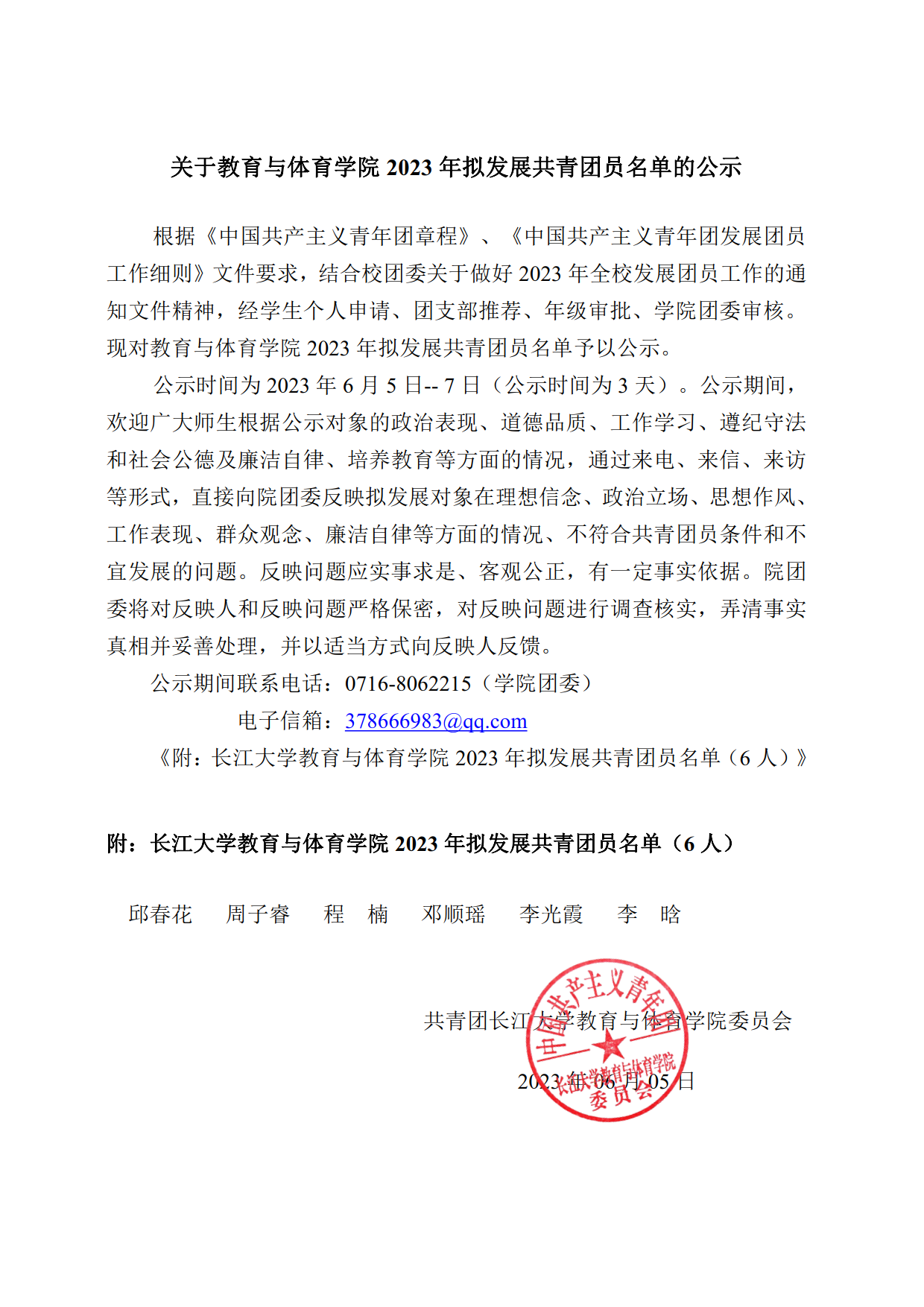 关于william威廉中文2023年拟发展共青团员名单的公示