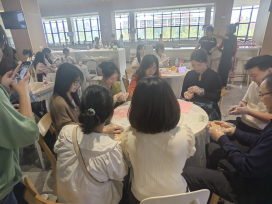 活动伊始,古力齐克热·努尔东同学上台宣读HSE国际健康、安全、环保准则,要求同学们遵守活动秩序并维护公共环境。接着,张科老师指出同学们要厚植中华民族共同体意识,为维护国家统一和民族团结贡献力量。他以自己的幼时经历为例,深刻证明了团结是经济发展的重要驱动力。随后,他聚焦国内外的严峻态势呼吁大家携手并进、同舟共济,在风起云涌的时代中维护国家安全,在鱼龙混杂的网络上积极传播正能量。最后,在古力齐克热·努尔东同学的悉心讲解下,各院学生代表们了解了制作月饼的具体流程,并成功完成了月饼的制作。