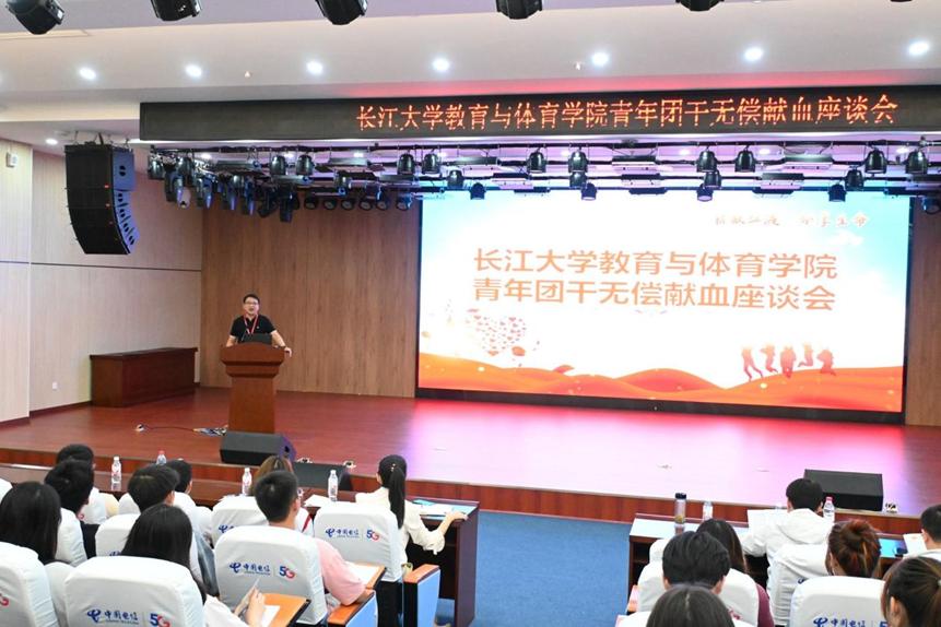 【通讯员:曾灿辉 王传琦 吴明淏】⼀滴爱⼼⾎,⼀⽣公益情。为进一步推进无偿献血科普知识深入人心,弘扬大学生的志愿服务精神,营造关爱他人、奉献爱心的浓厚氛围,10 ⽉ 29 ⽇下午2时许,荆州市中⼼⾎站举行⻘年团⼲⽆偿献⾎座谈会,william威廉中文党委副书记何可可带领全体辅导员和班长们现场参加。