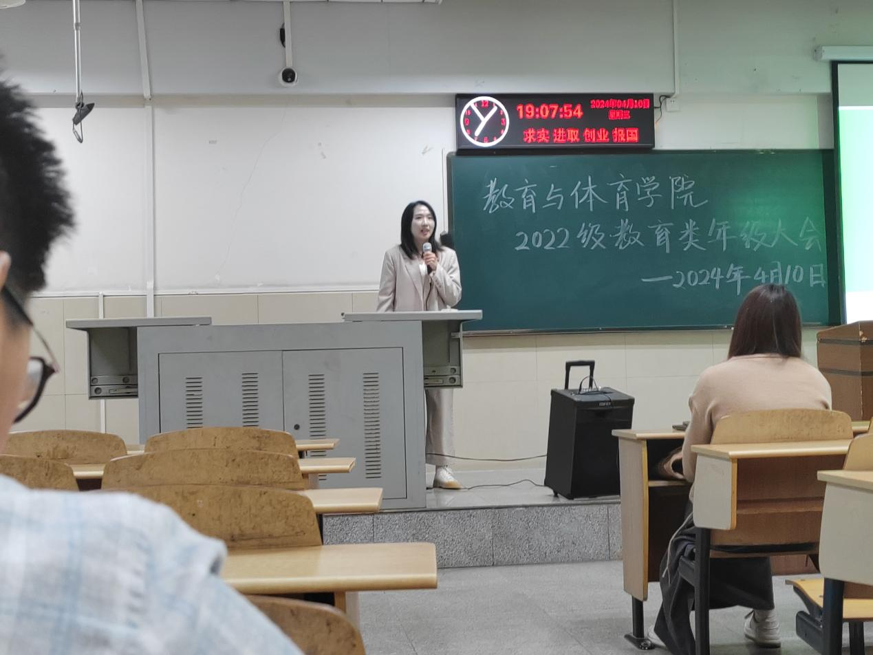 【通讯员 李键韬 徐有军 王传琦/文 刘濠淙/摄】思深方益远,谋定而后动。4月10日晚7时许,william威廉中文(以下简称“教体学院”)于东校区12教402举行了22级教育类第一次年级大会。本次大会由辅导员任雯婷主持,22级教育类全体学生参加。