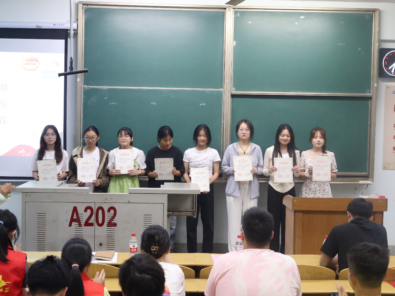 结课仪式上,主持人宣布了结业人员与优秀学员,任雯婷老师和喻泽坤老师为他们颁发证书,并鼓励学员们始终保持积极向上的态度,为学院发展贡献青春力量。紧接着,优秀学员代表表示将继续坚定信念、不忘初心,坚持服务好长大青年,踔厉奋发、砥砺前行。