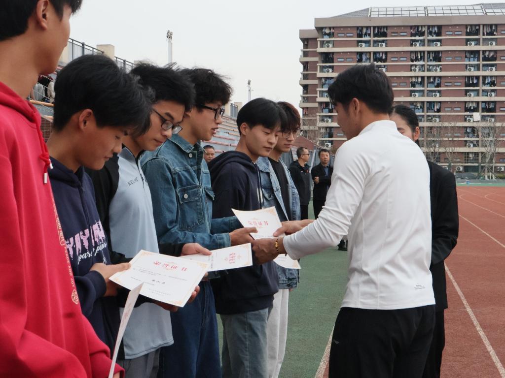【通讯员 叶怡蘩】一年一度春草绿,强身健体正当时。为全面推进素质教育,提升学生的身体素质,渲染校园足球文化氛围、传承足球魅力,2025年3月22日,WilliamHill中文第二十二届运动会专业组足球赛圆满落幕,颁奖仪式顺利举行。william威廉中文党委副书记何可可、副院长杨青宝、体育教育系副主任薛凌、社会体育指导与管理系系主任孔祥魁、专业组足球赛裁判长胡国江、班主任代表倪锡锋以及学生代表参加本次活动。