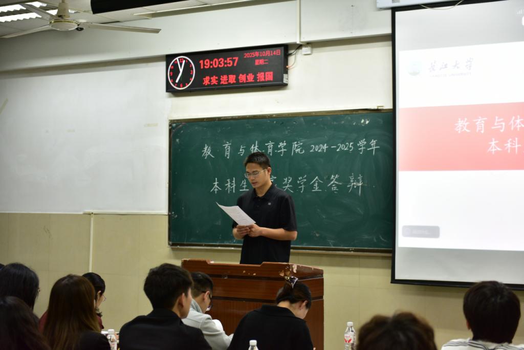 紧接着,答辩正式开始。经过学院推荐、资格审查等前期环节,共有21名优秀本科生脱颖而出,进入本次现场答辩环节。他们通过ppt汇报,全面展现了自身在学业成绩,科研竞赛,社会实践等方面的突出成就。候选人中,既有学业成绩稳居专业前列的“学霸”,也有在国家级、省级竞赛中屡获佳绩的“科创先锋”,更有扎根基层、服务社会的“实践标兵”。