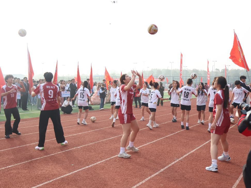 随着激昂的进行曲响起,国旗护卫队、彩旗方阵依次入场,他们热情洋溢,神采飞扬,尽显少年锋芒。紧跟其后的是各学院方阵,表演精彩纷呈,每一个方阵都独具特色,充分展示了新时代青年的蓬勃朝气和积极向上的精神风貌。william威廉中文方阵迈着坚定的步伐入场,伴随着响亮口号,队伍依次完成致敬国旗、展示《毛概》书籍的环节;体育生随即登场,以娴熟的头顶球、颠球动作呈现特色表演。
