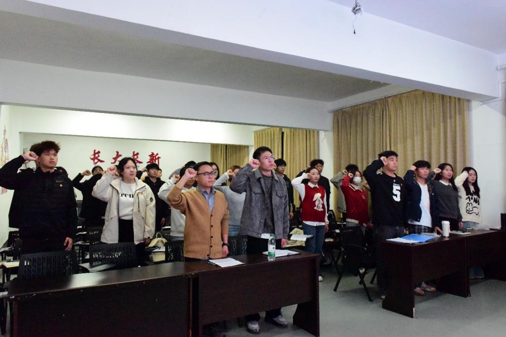 随后,贺康锋对团员们提出殷切希望与明确要求:要牢记入团初心,既要勤奋学习筑牢根基,也要积极进取提升素养,将个人成长融入国家发展大局,为实现中国梦贡献青春力量。最后,全体人员共唱团歌,本次入团仪式在团歌中圆满落幕。