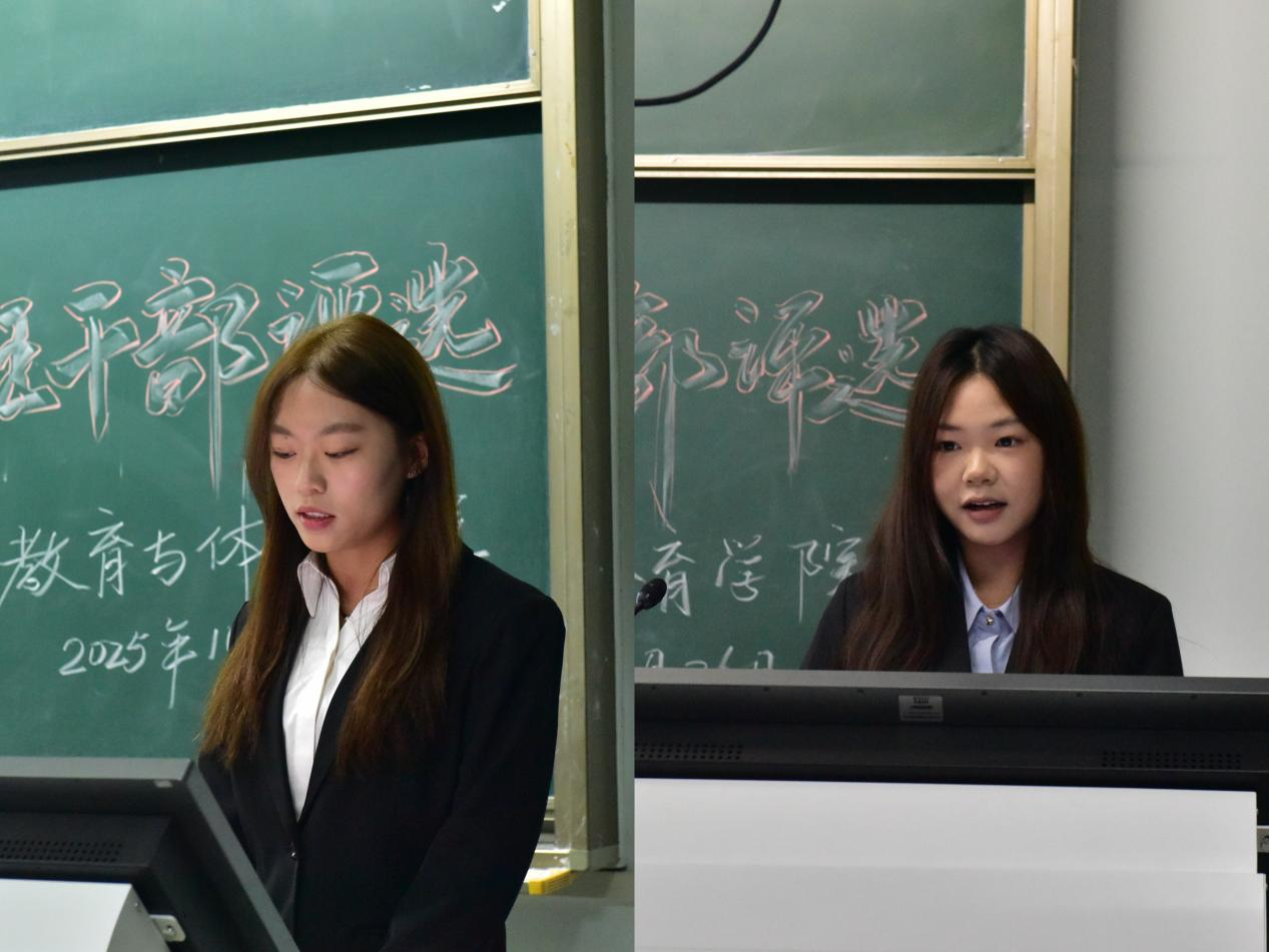 在答辩会现场,各位候选人依次登台,他们结合自身的任职经历、工作成果以及未来规划,进行了精彩绝伦的陈述。他们之中,有统筹班级各项事务的“班长兼团支书”,也有专注于学风建设的“学习委员”;有负责安全与生活事宜的“副班长兼安全委员”“寝室长”,还有在组织、宣传、体育等岗位上默默付出的各类委员。每一位候选人的陈述,皆是对责任与担当的生动演绎,充分彰显了教体学院学生干部队伍卓越的组织力、执行力和思考力。