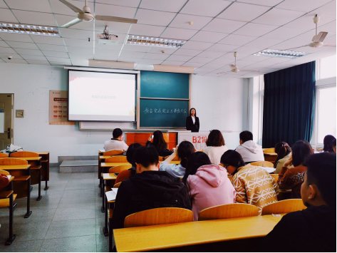 紧接着是预备党员接收大会,首先由汪露等4位组织发展对象依次宣读各自入党志愿,随后,由4位组织发展对象各自的入党联系人宣读入党意见并提出建议。任雯婷老师提到,作为学生党员,要充分发扬自身的先锋模范作用,作同学们的榜样,不能只埋头做事,更要走出班级、走出年级,更好的服务于身边的同学。接着,经过28位具有表决权的党员表决,4名发展对象全部发展为预备预备党员。大会最后,全体党员一同观看了《我宣誓》短视频,并在党旗下宣读入党誓词,向党组织做出郑重承诺。