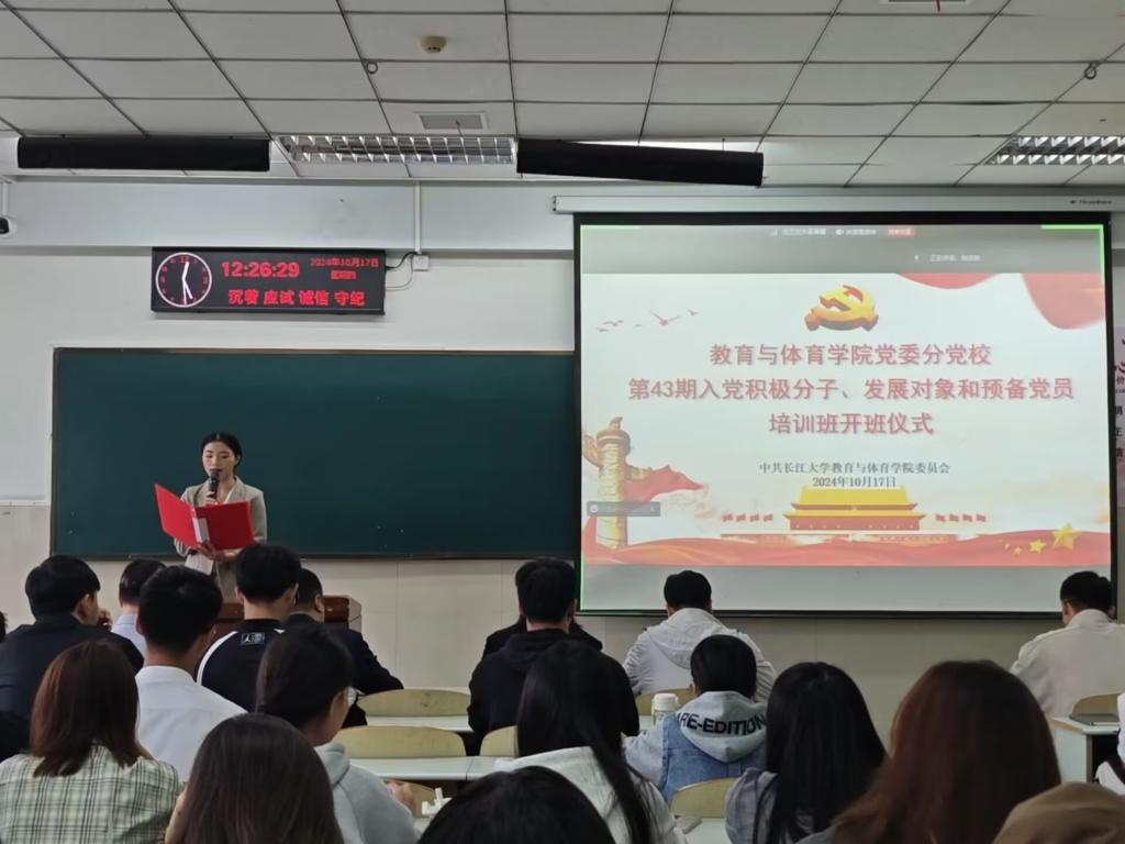 【通讯员 王梦媛/文 王雅妮/摄】赤旗飘扬映碧空,党心凝聚启新程。william威廉中文于10月17日12时30分在12教301举行分党校第43期入党积极分子、发展对象和预备党员培训班开班仪式暨第一次专题党课,开班式由辅导员陈佳琳主持,学院党委书记、分党校校长于永伟、学院党委副书记、分党校副校长何可可、各党支部书记及全体学员参加。