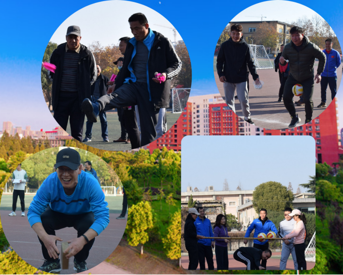 在比赛中教职工们个个精神抖擞,认真进行热身的赛前准备,全身心投入力争第一,整个运动会的气氛轻松愉悦又不乏激烈刺激,扣人心弦又不失活泼。在竞争激烈的同时,教职工们相互鼓励、互帮互助,秉承友谊第一,比赛第二的原则,发扬了团结协作的团队精神,将运动会推向高潮。比赛最为有趣的项目是夹乒乓球,运动员必须同时保持用腿夹住排球,手拿筷子夹住乒乓球行进15米,有的老师缓慢迈开双腿前行,有的老师双腿发力跳跃前行,方式各异,都以最快的速度冲向终点。“快!快!快!”运动场上不时响起一阵阵欢呼,每一位教职工的脸上都洋溢着尽兴的笑容,沉浸在趣味运动会的热烈与欢乐中。整个运动会既充满趣味性又充满挑战性,相关工作人员举起相机将这些精彩时刻记录了下来。