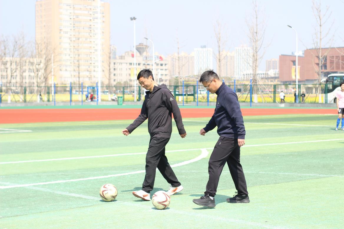 在热烈的掌声中,大学体育部李明主任和群体竞赛部李新煜主任共同为比赛开球,宣告本届足球比赛正式启幕。