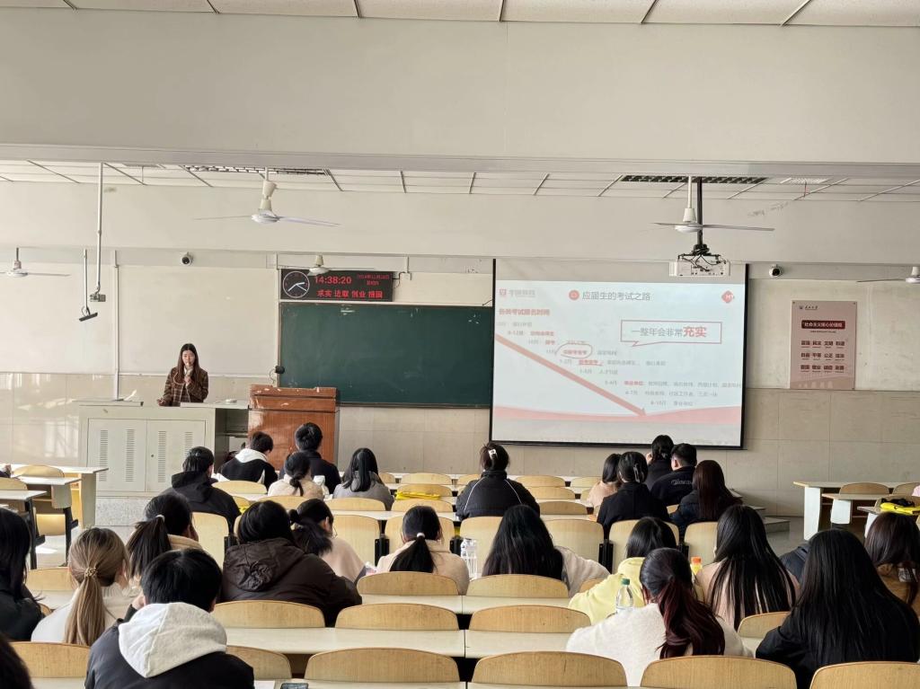 随后便是面试环节介绍。占欢老师详细介绍了面试的具体要求,包括面试形式、评分标准、常见题型与答题技巧等内容。通过实际案例分析与模拟演练指导,让同学们对面试流程与应对策略有了直观感受与深入理解,有效缓解了大家对面试环节的紧张。最后的提问环节,同学们积极踊跃发言,就自己在备考过程中遇到的问题向占老师请教。占老师一一耐心解答,给出了极具针对性与实用性的建议,现场互动氛围热烈,同学们纷纷表示受益匪浅。