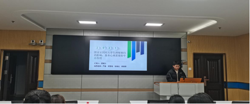 原毅仁汇报的主题为《国家认同对大学生抑郁倾向的影响:基本心理需要的中介作用》,他一直以来很关注抑郁症这个公共健康问题,大学生抑郁和国家认同之间的关系是他的研究主题。在研究设计中,他提出了以下研究问题:①在集体主义文化背景下,中国大学生的国家认同能否负向预测抑郁水平?②基本心理需要满足能否中介国家认同对抑郁的影响?他以湖北某大学生为被试,采用整群抽样法进行问卷施策并回收问卷。研究工具包括:国家认同量表、基本心理需要量表和DASS-21抑郁分量表。再者进行综合讨论,最后提出本研究的理论贡献、不足与展望。老师点评环节,首先是冯老师肯定了本研究的创新性和价值,希望他的研究设计内容能更丰富。其次,郑老师提出思考问题:除国家层面外,是否还要个体层面的调节因素,并希望他能做进一步研究。