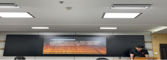 其次是体育教育训练学专业的李海涛同学,他就“基于运动生理视角下武术套路训练中的运动研究”做专题报告。他首先介绍了武术套路训练中的生理学特征,如功能特征、姿势反射特征、呼吸特征。运动生理学在武术套路训练中的运用、运动生理学在武术套路训练中的价值这三个部分进行详细汇报