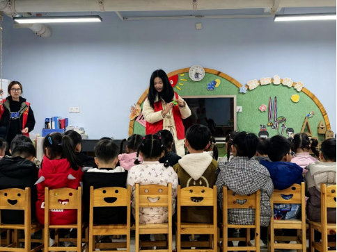 活动最后,志愿者团队向幼儿发放小礼品,并开展行为指导,鼓励幼儿将助人理念转化为日常实践。此次活动既强化了学前教育阶段德育工作实效,也为高校青年志愿者提供了社会实践平台,进一步提升了学院服务地方教育的功能。