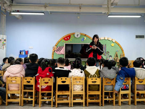 活动现场,青年志愿者支队队长陈欣颖与志愿者吴世阳通过情景化叙事方式,为幼儿讲述“雷锋雨中助人”等经典故事。通过生动讲述与直观教具展示,帮助幼儿建立对雷锋精神的初步认知,理解其核心内涵。