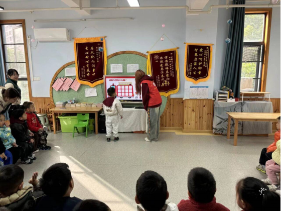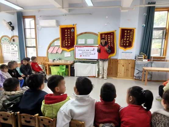 随后,志愿者黄冰弦引导孩子们参与“消防车里有什么?”的互动游戏,孩子们积极思考,争相回答,展现了他们对消防知识的初步认识。游戏不仅提升了孩子们的反应速度,也加深了他们对消防安全知识的记忆。