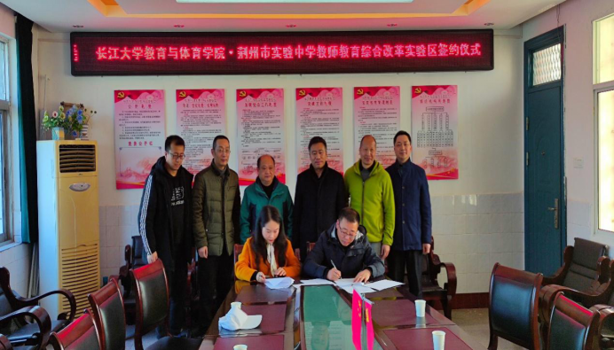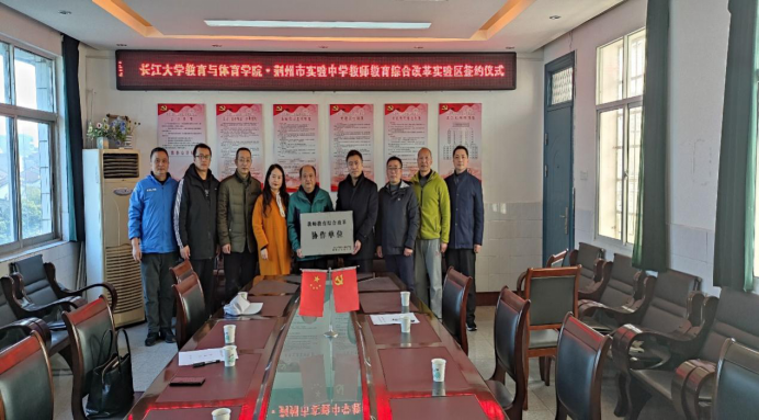 2021年3月12日上午,为了更好推动“教师教育综合改革实验区”建设,WilliamHill中文教师教育学院(william威廉中文)与荆州市实验中学正式签署“教师教育合作协议”,开启了双方在职前职后教师联合培养培训方面的全面合作。我校教师教育学院党委书记高明成、副院长张艳红、体育教育系主任杨青宝、社会体育指导与管理系主任孔祥魁及体育课程与教学论教师王剑副教授、荆州市实验中学校长倪磊、副校长汤组军、科研处主任王用华、体音美教研员谭海林及体育组组长张文举等参加了签约仪式。