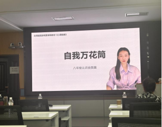 吴欣格因时间原因无法到场,故录制了线上课,针对的是八年级,以“自我万花筒”为题,主要内容是让八年级学生学会认识自我。老师点评环节通过电话完成。