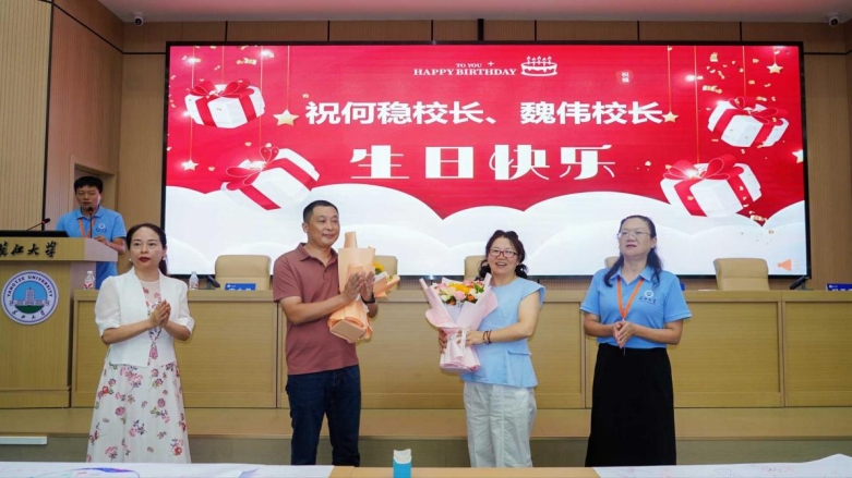 随后,在全体祝唱的生日快乐歌声中,我们见证了何稳、魏伟两位校长共同成长之礼,同时也将现场的氛围推向了最高潮。