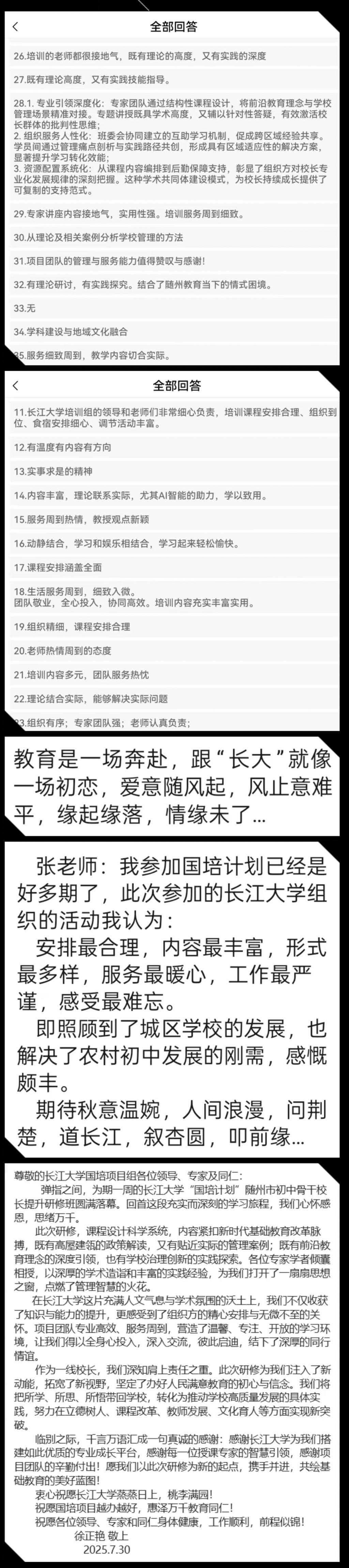 七日研修,是思想的洗礼,是智慧的碰撞,更是情感的升华。相信随州市初中骨干校长们必将以此次研修为新起点,以文化铸魂,以智慧育人,在推动随州教育高质量发展的征程上书写新的华章!