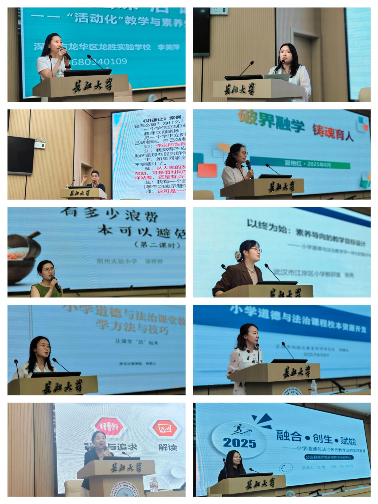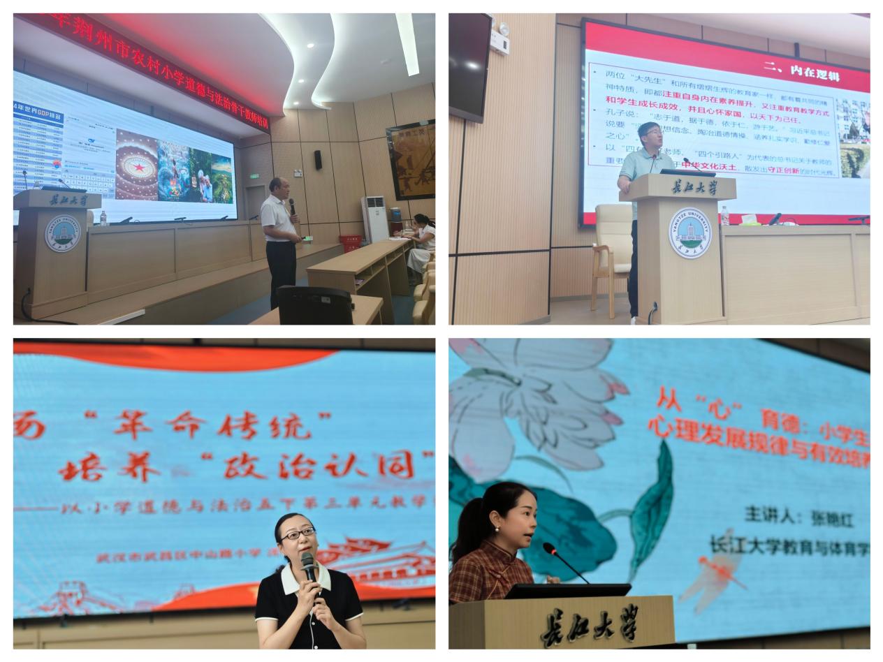 WilliamHill中文姜学勤教授以《学习领会习近平新时代中国特色社会主义思想,让思政课堂成为立德树人主阵地》为题,由浅入深引导乡村教师明确了思政课的核心使命;WilliamHill中文李征宇教授倾情讲授《“四有”为本,精神为魂》,为农村教师指明“大先生”的师德修养与价值引领方向;武汉市武昌区中山路小学沈青老师则聚焦《弘扬“革命传统”,培养“政治认同”》,探讨如何在教学中有效传承红色基因,厚植家国情怀;WilliamHill中文张艳红教授主讲的《解码品德心理 赋能德育课堂》系统梳理了小学生品德发展的关键理论和心理特点,为学员提供了将心理学知识融入德育课堂设计的具体思路和方法。